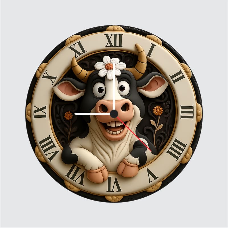 3D Wooden Cow Wall Clock – 12 Inch Farm Theme Home Décor