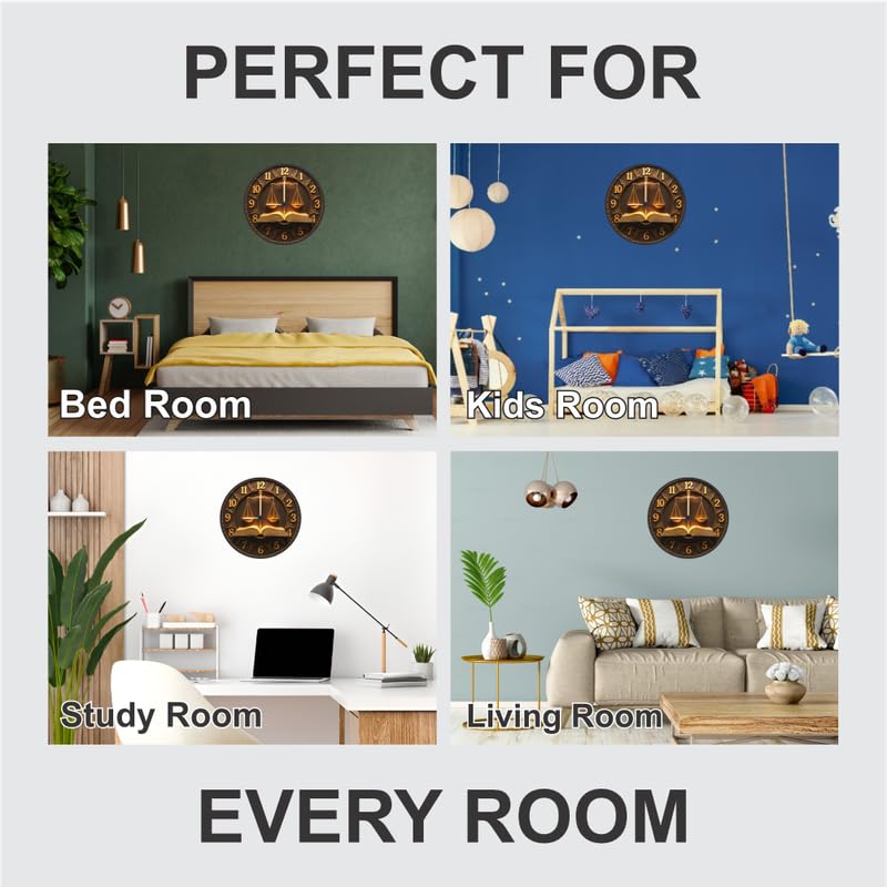 3D Wooden Justice Wall Clock – 12 Inch Legal Theme Décor