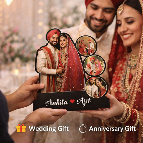 This custom wedding photo MDF stand is a beautiful way to preserve and celebrate cherished wedding memories. Designed especially for couples, it transforms special moments into a timeless tabletop keepsake.